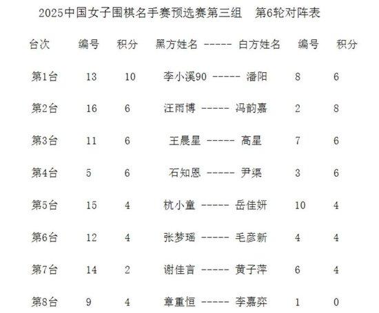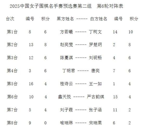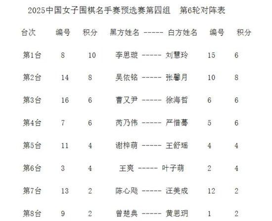 第六🛋🏩轮对阵: