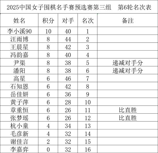 👾 预选赛名次表: