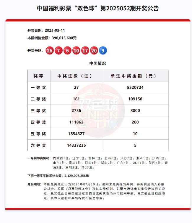 北京时间2025年5月11日,福彩双色🕯球第25052期开奖,以下是详细开奖流程: