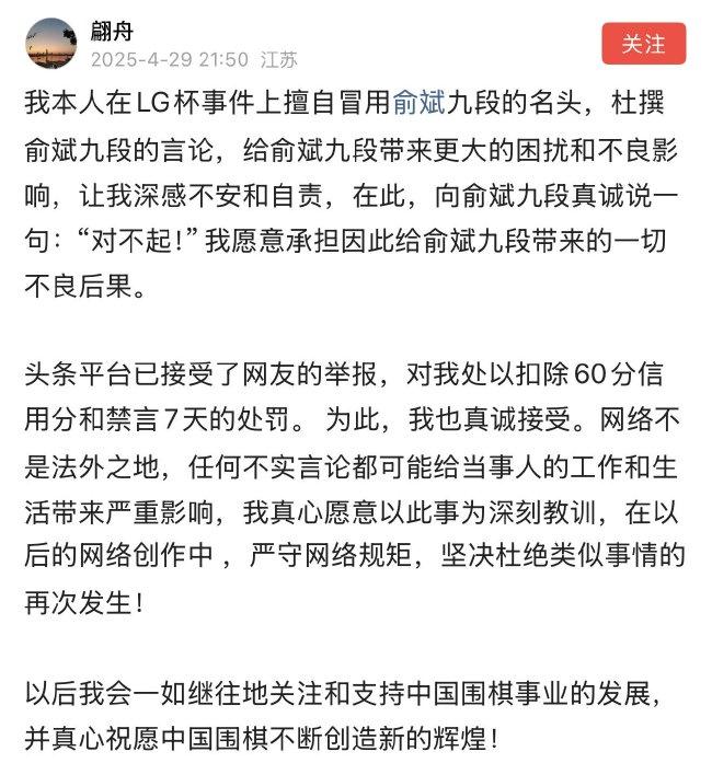 1 月 23 日头条博主 “翩舟” 发表以 “俞👅斌:” 开头的一段所谓中国围棋总教练俞斌的言论,其中竟提及要 “批评教育柯洁”。