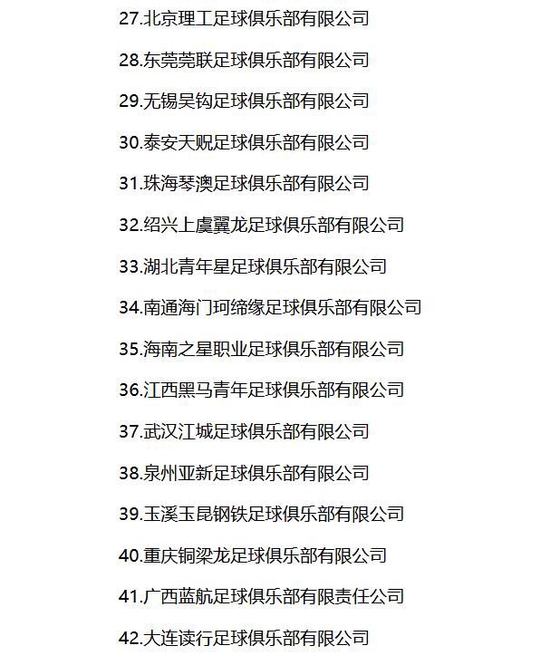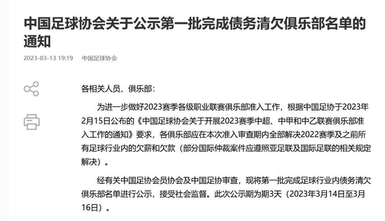 🎗北京时间3月13日,中国足协公示第一批完成债务清欠俱乐🍭部名单,山东🚏泰山、武汉三镇等球队正常在列,中超三支球队成都蓉城、广州城和深圳队并不在列,中甲更是有多达7支球队还有问题。如果足协严格按照准🎵入规定执行,部分俱乐部将解散或者退出。