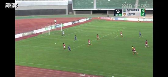 判例三:中乙联赛第15轮,西安崇德荣海vs日照宇启,比赛第4分钟,日照宇启33号队员在与西安崇德荣海7号队员争💿抢高空球后,西安崇德荣海7号手臂疑似接触对方队员面部或颈部,裁判员临场未判罚犯规。