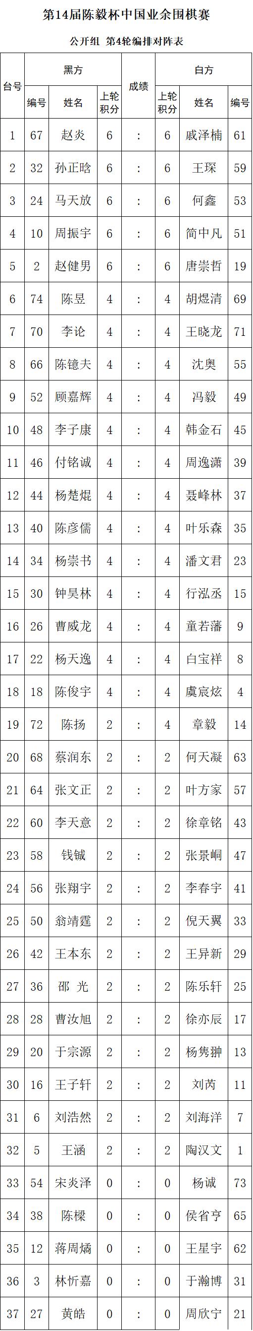 明日上午9:0📢0将进行第四轮比拼,焦点战马天放vs何鑫、赵健男vs唐